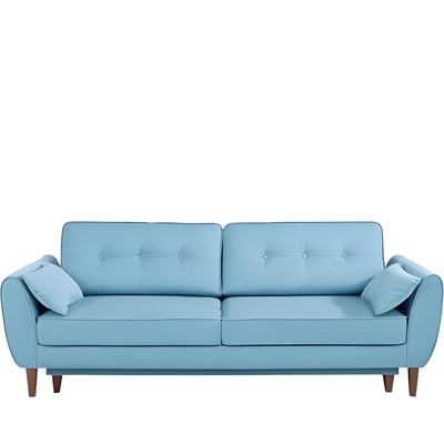 Canapea CASTELLO 3, albastru/wenge, stofa catifelata/lemn/PAL, 200x85x78 cm