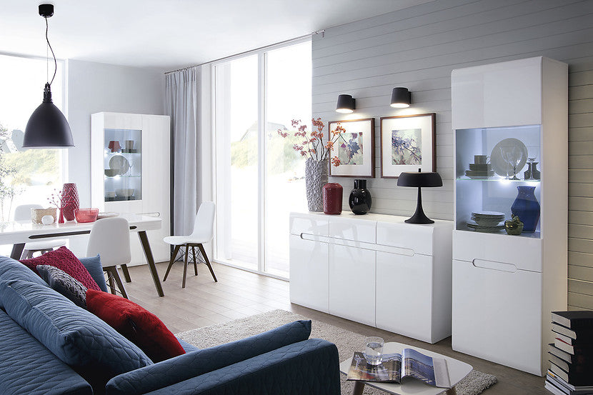 Vitrina AZTECA TRIO, alb, PAL/sticla, cu iluminare LED, 90x41x145 cmVitrina AZTECA TRIO, alb, PAL/sticla, cu iluminare LED, 90x41x145 cm