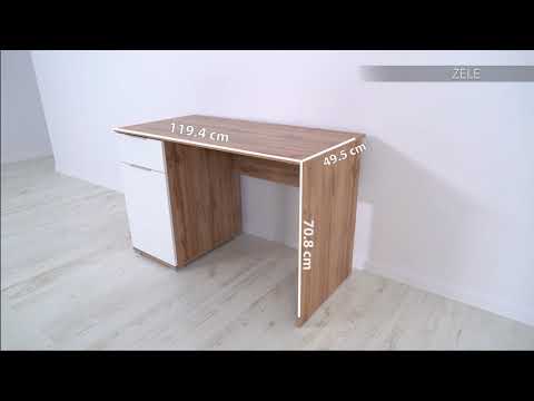 Birou ZELE, stejar wotan/alb, PAL laminat, 120x60x76 cm