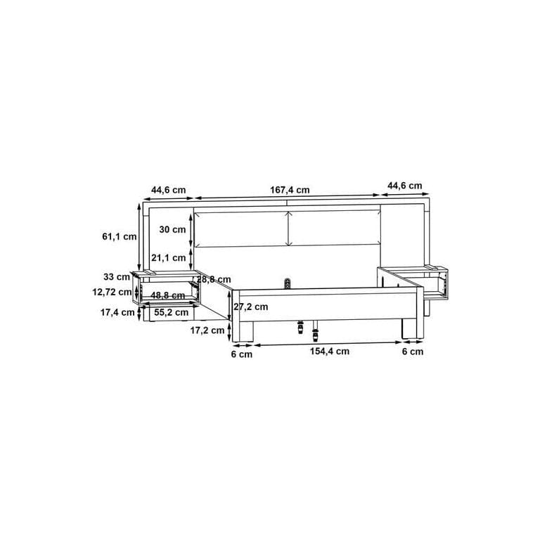 Cadru pat Acazio 160x200, stejar inchis/negru, PAL/metal, cu noptiere