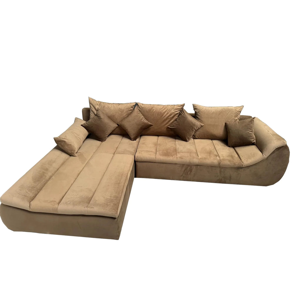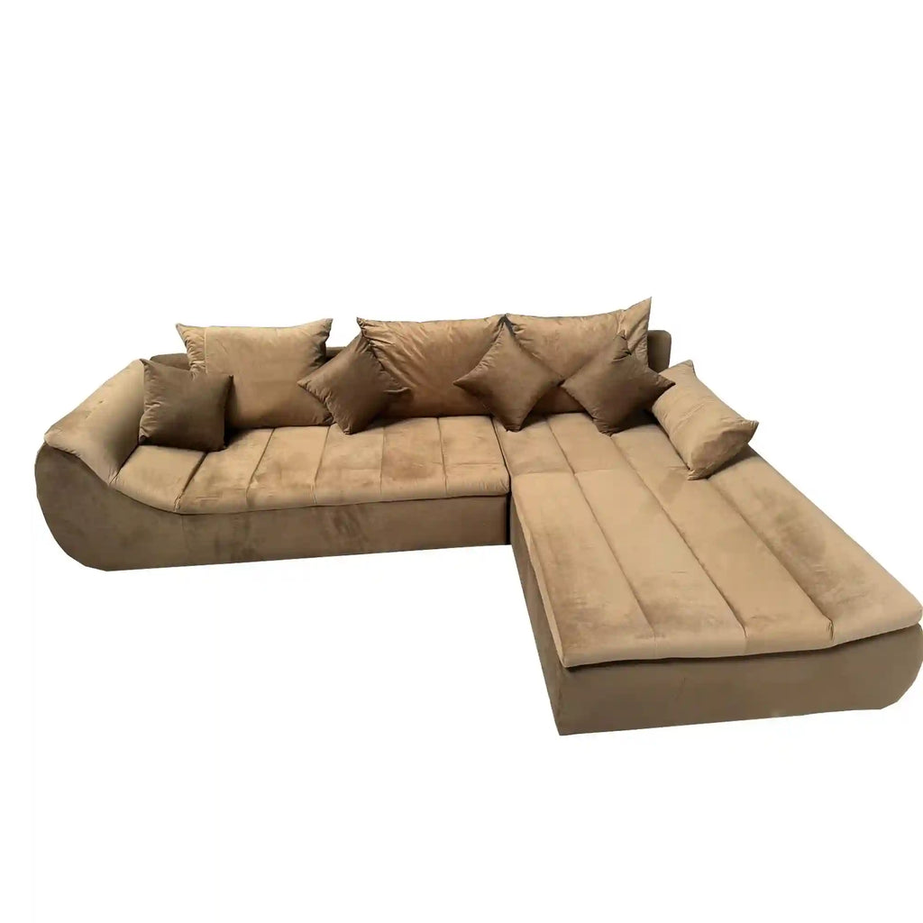 Coltar extensibil ROSARIO-OANA, stofa crem/maro, cu lada depozitare, 300x200x76 cm
