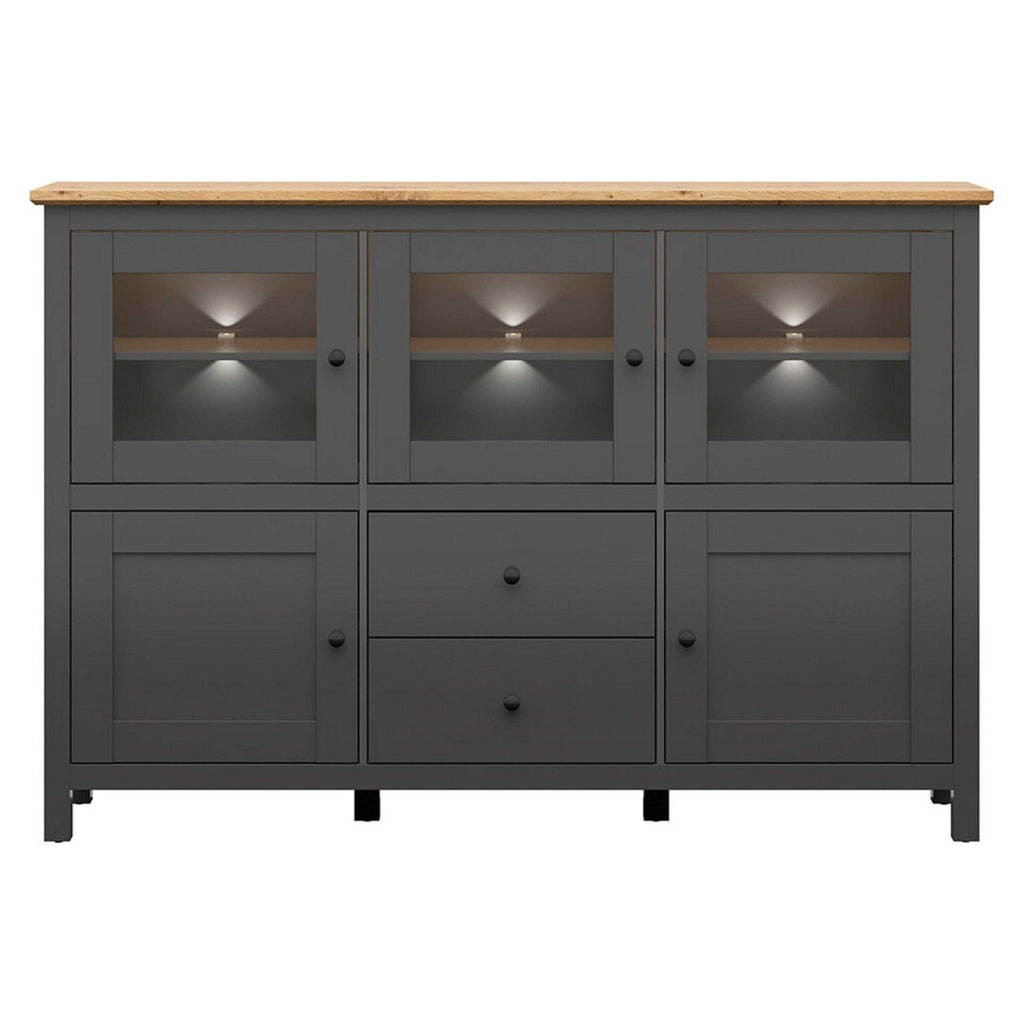Comoda HESEN, gri grafit/stejar artisan, PAL melaminat/sticla, cu iluminare LED, 186x44x126 cm