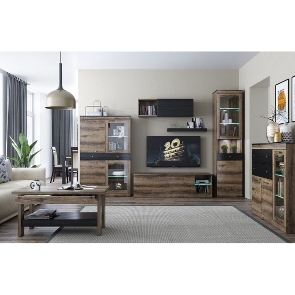 Comoda Jagger, stejar inchis/negru, PAL laminat, 110x34x36 cm