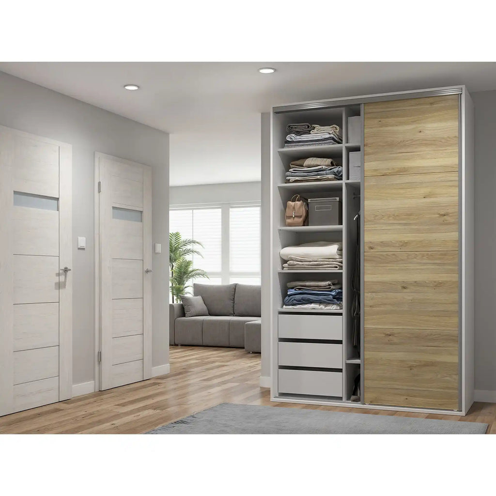 Dulap FLEX, alb/stejar, PAL, cu 3 usi, 150x66x240 cm