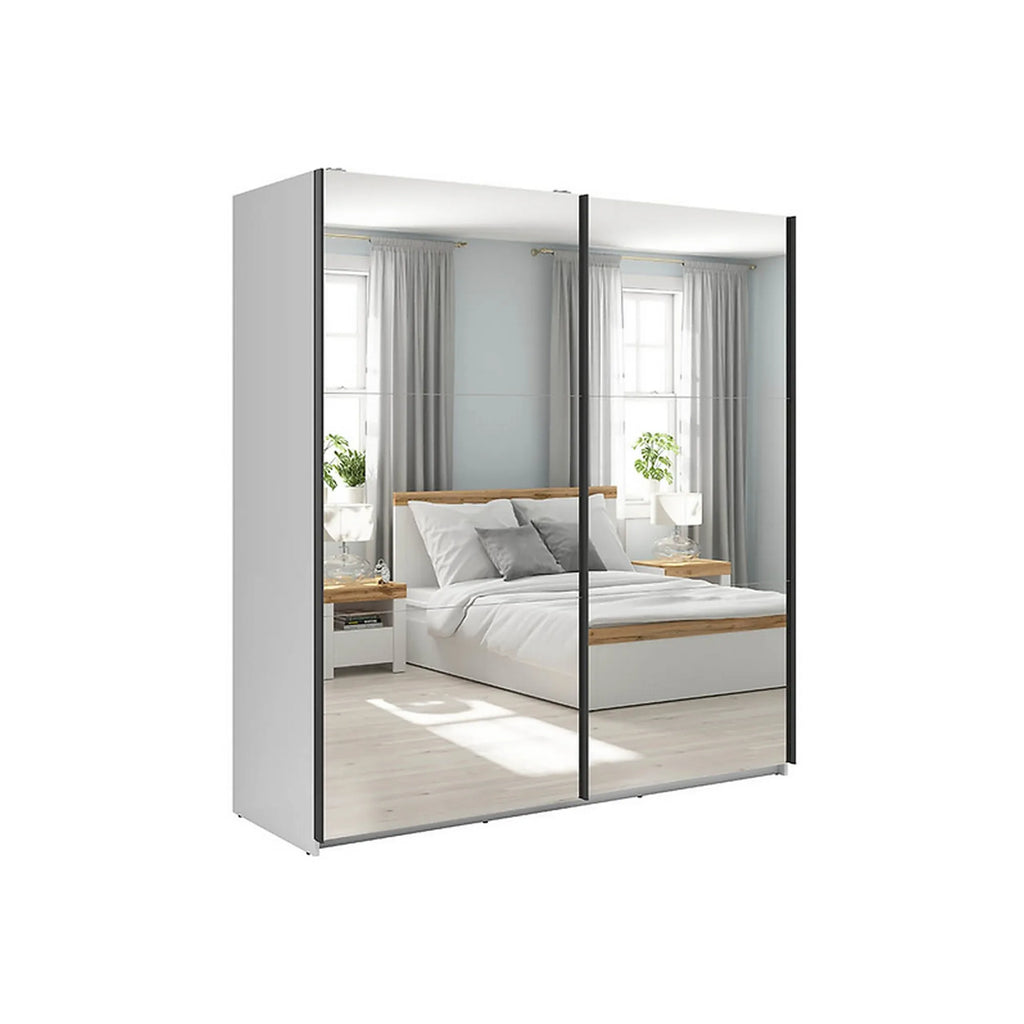 Dulap de haine cu usi culisante TETRIX, alb lucios, PAL, cu 2 usi si oglinzi, 183x60x196 cm