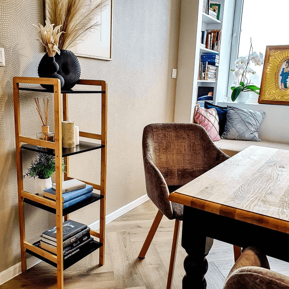 Etajera NAOKO, stejar natural/negru, 33x34x110 cm
