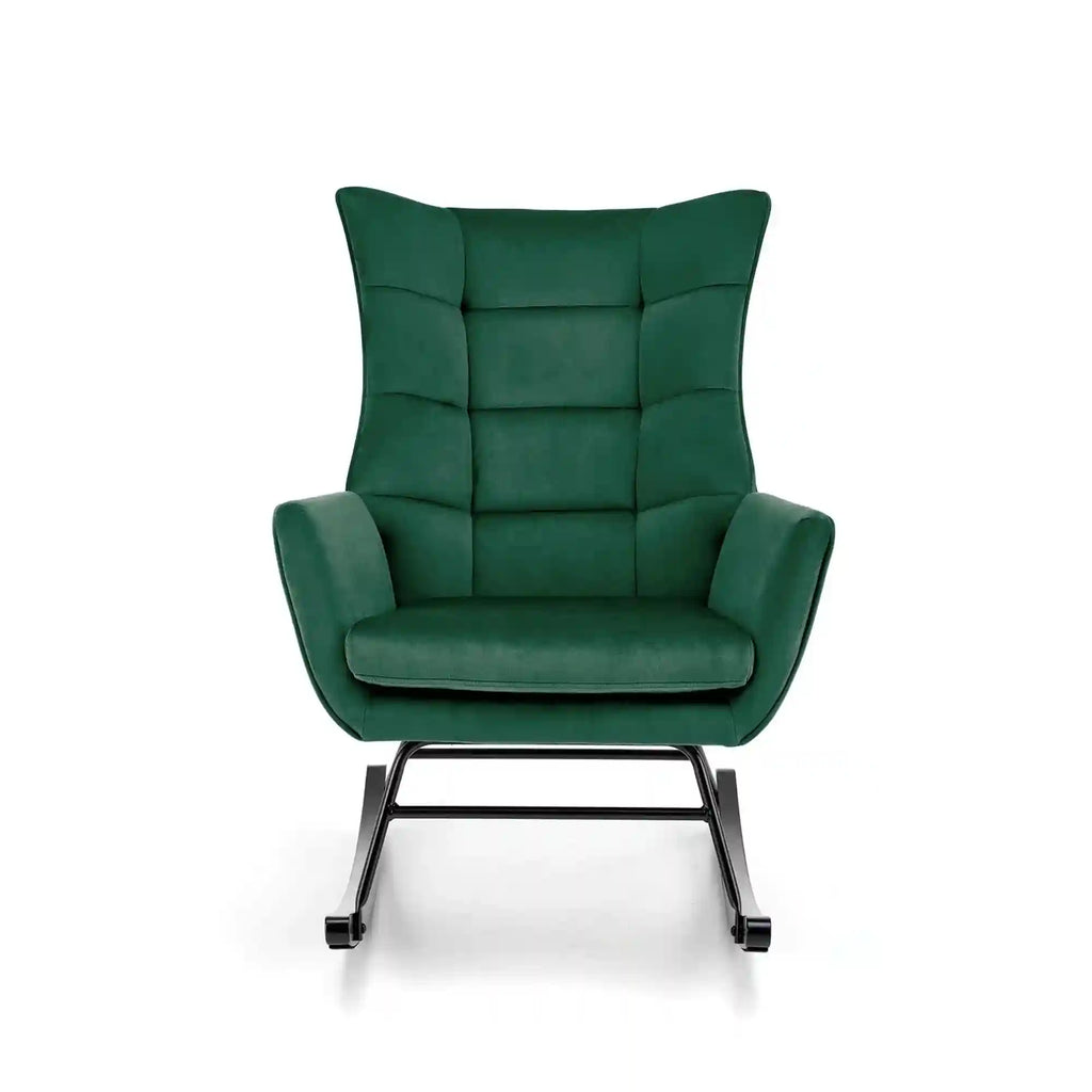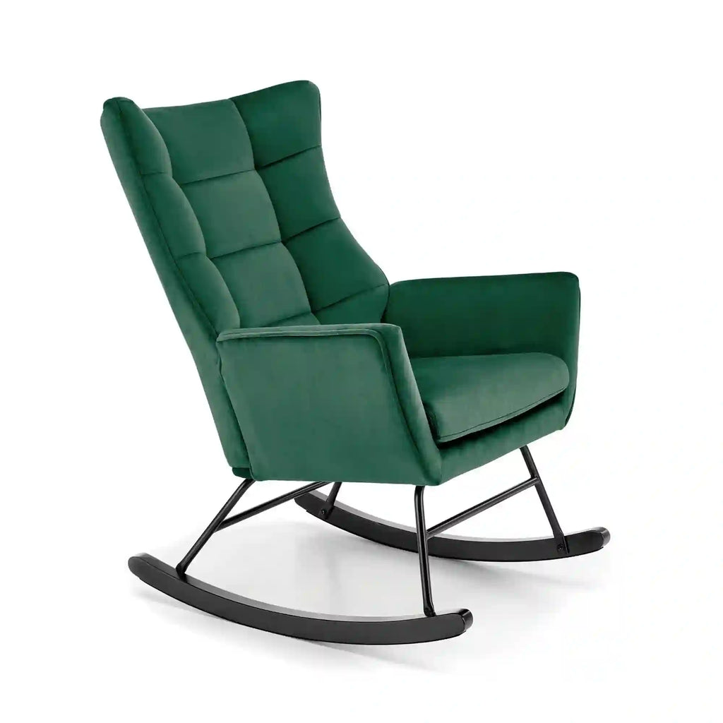Scaun balansoar tapitat BAZALTO, verde/negru, stofa catifelata, 70x90x92 cm