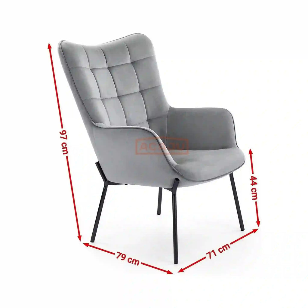 Fotoliu CASTEL, stofa catifelata gri - Bluvel 14, 71x79x97 cm