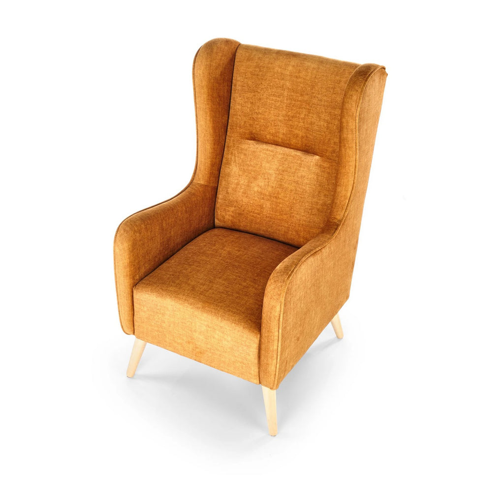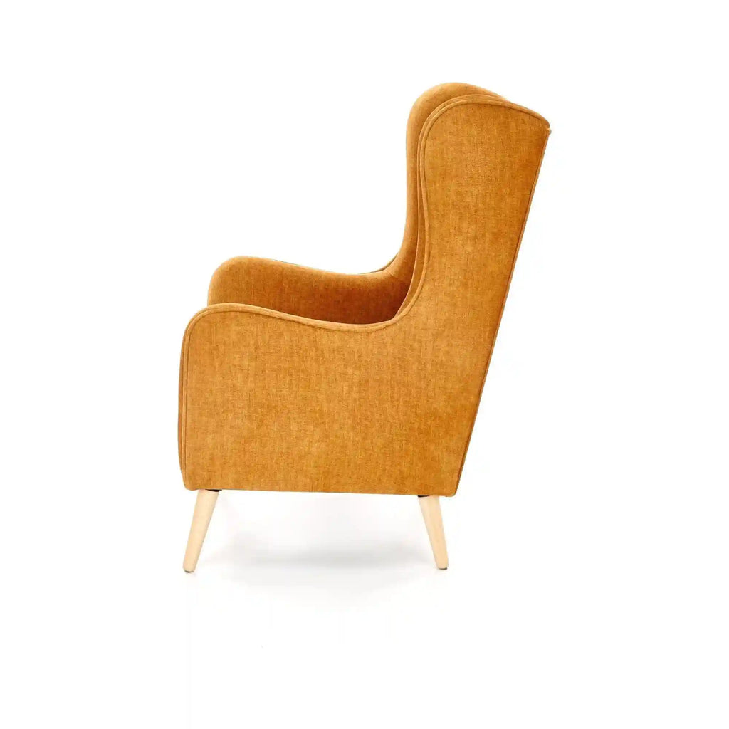 Fotoliu CHESTER 2, galben/stejar, stofa catifelata/lemn, 67x85x114 cm
