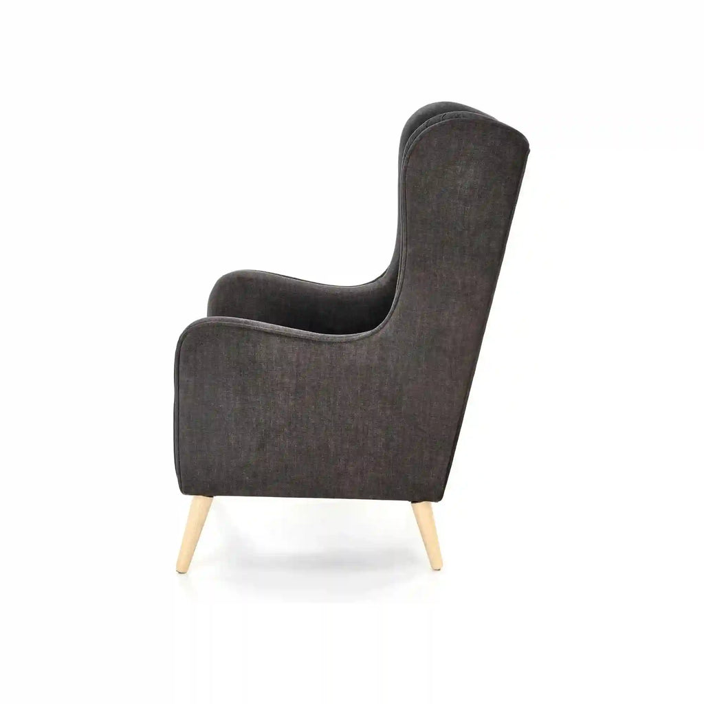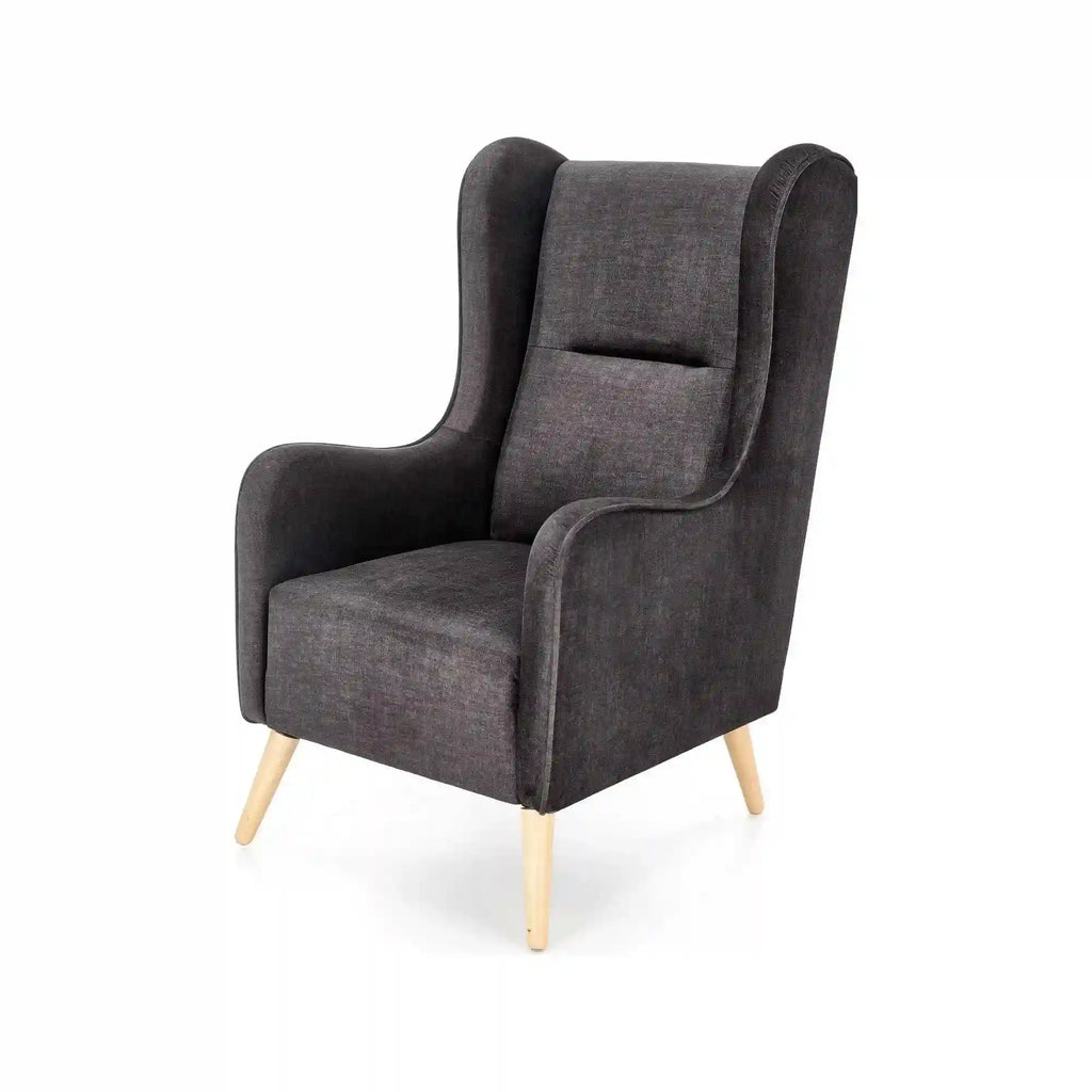 Fotoliu CHESTER, gri antracit/stejar, stofa catifelata/lemn, 67x85x114 cm
