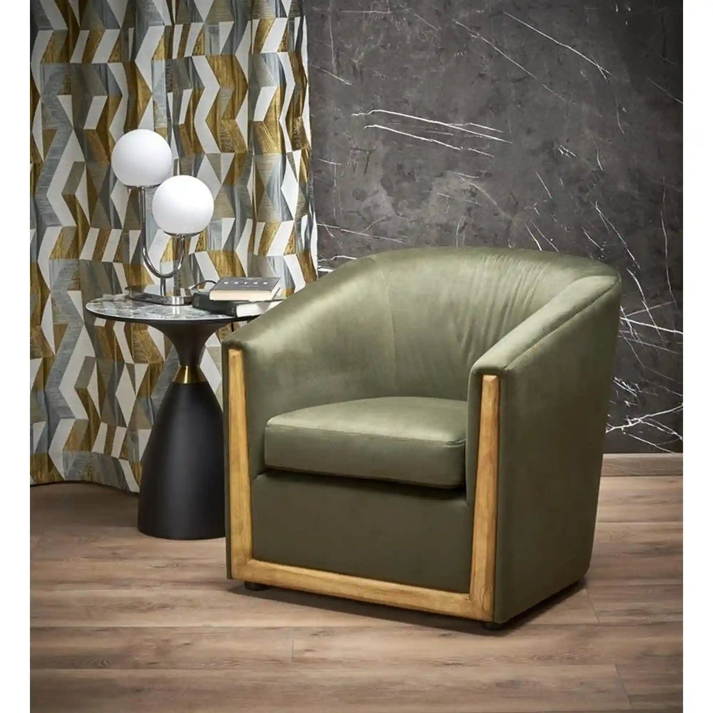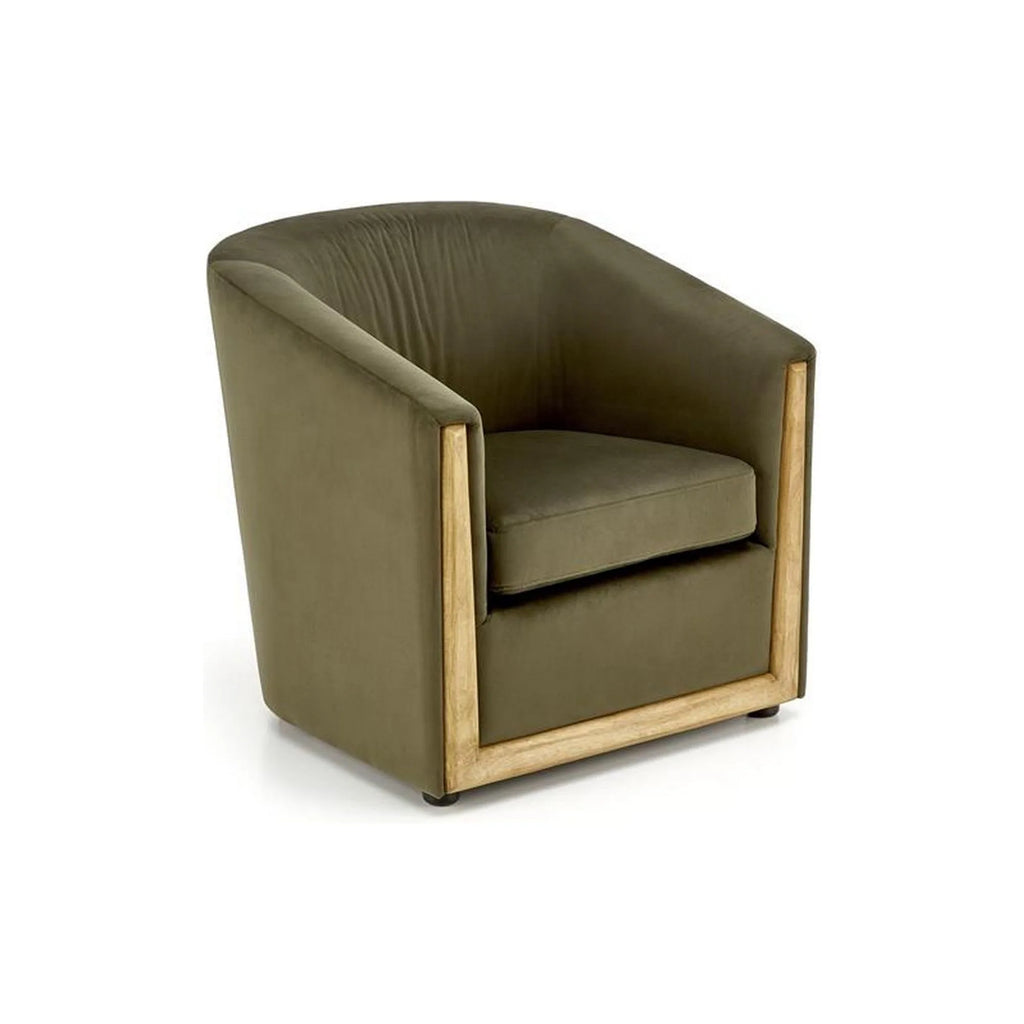 Fotoliu ENRICO, verde/negru, stofa catifelata/lemn, 71x72x71 cm