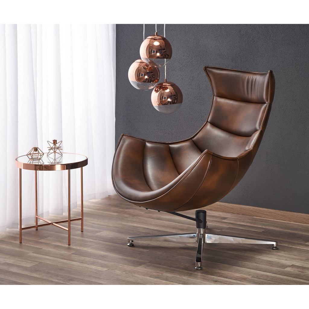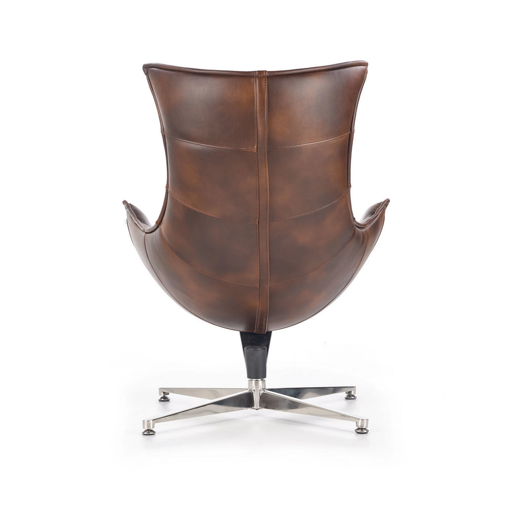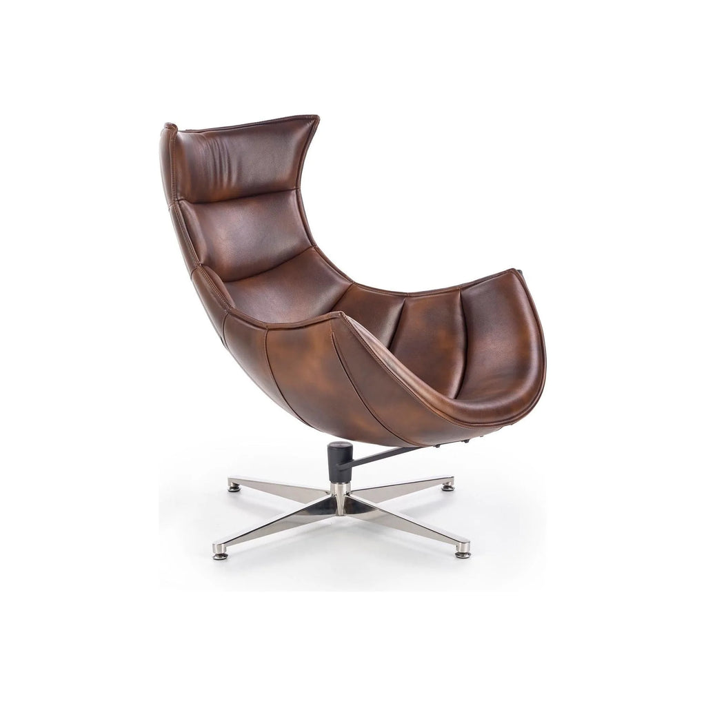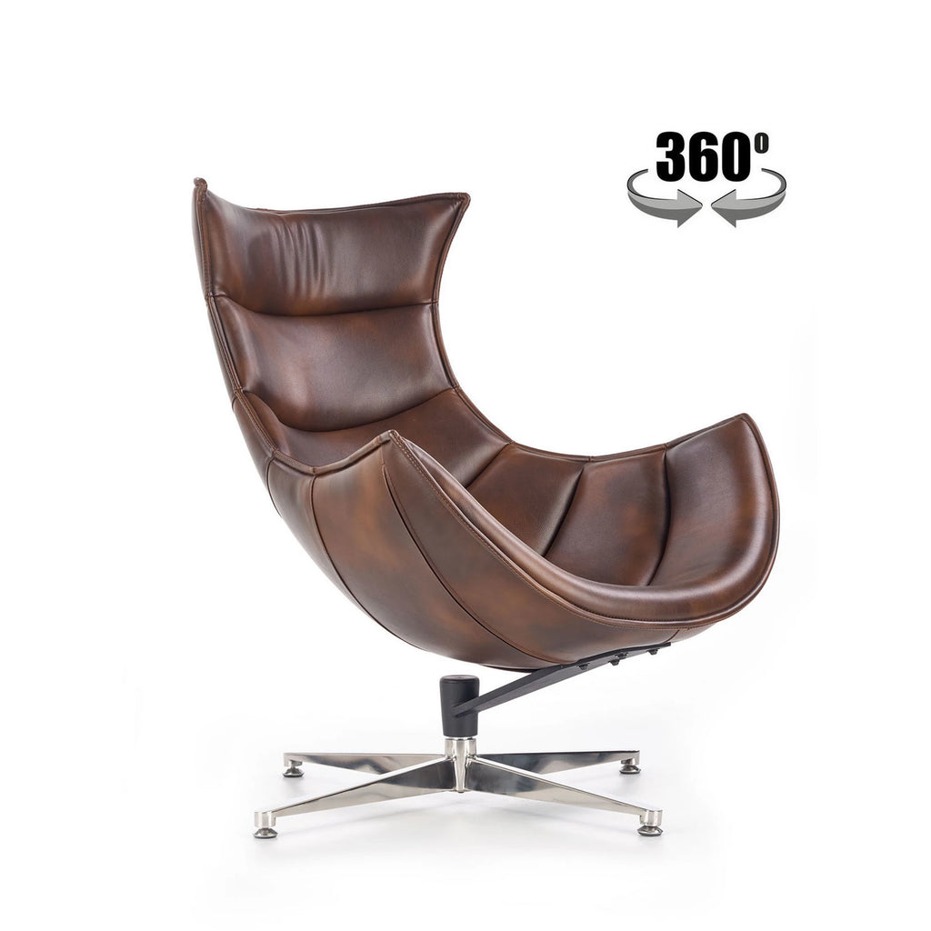 Fotoliu LUXOR, maro inchis/crom, piele ecologica/otel inoxidabil, 86x84x96 cm