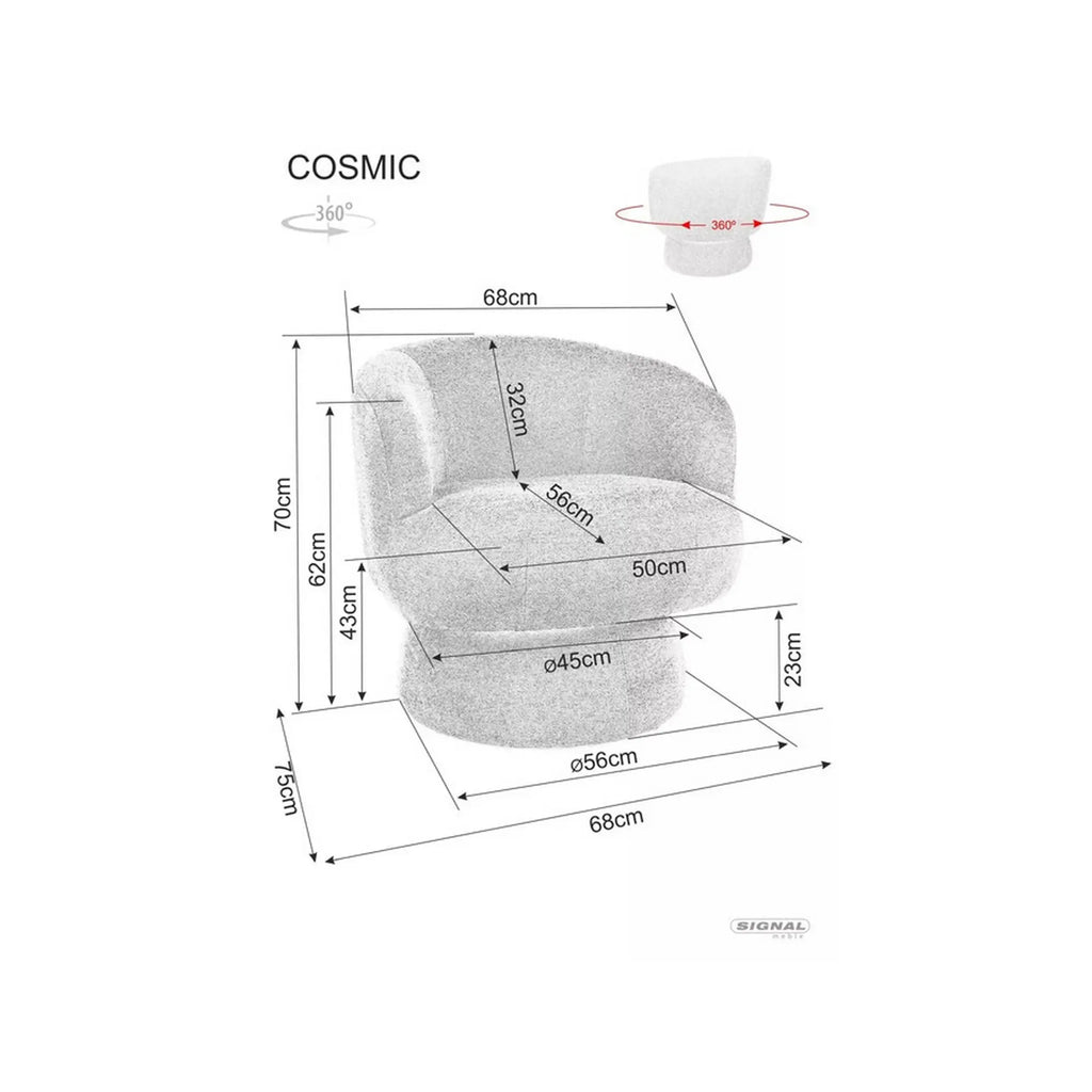 Fotoliu rotativ COSMIC, stofa clasica gri - Raven 13, 68x75x70 cm