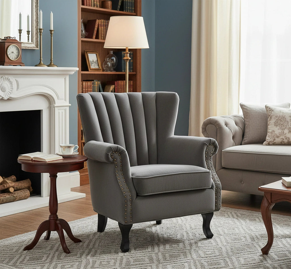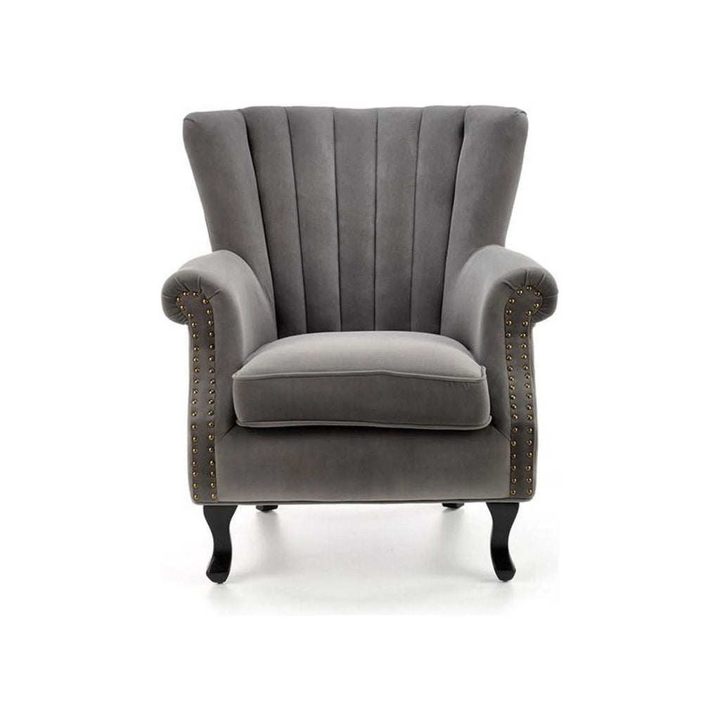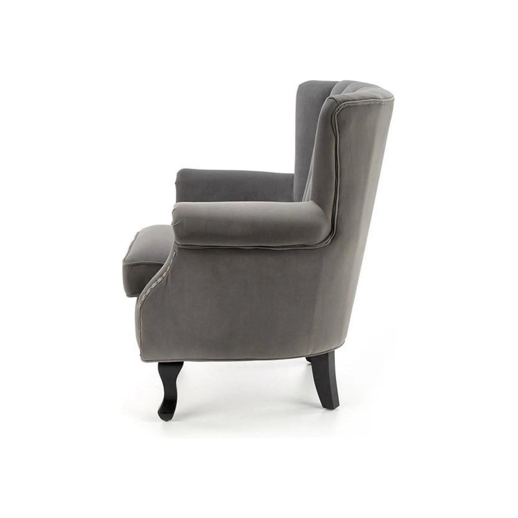 Fotoliu pentru living TITAN, gri/negru, stofa catifelata/lemn, 73x70x87 cm