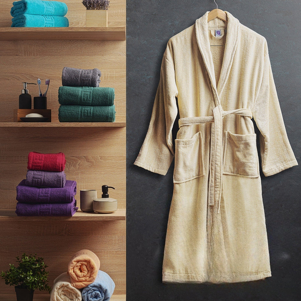 Halat baie VELUR, bej, bumbac, marime XXL