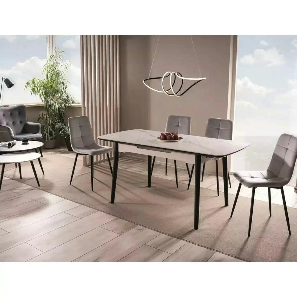 Masa extensibila APOLLO, alb cu efect de marmura/negru, 120/160x80x76 cm