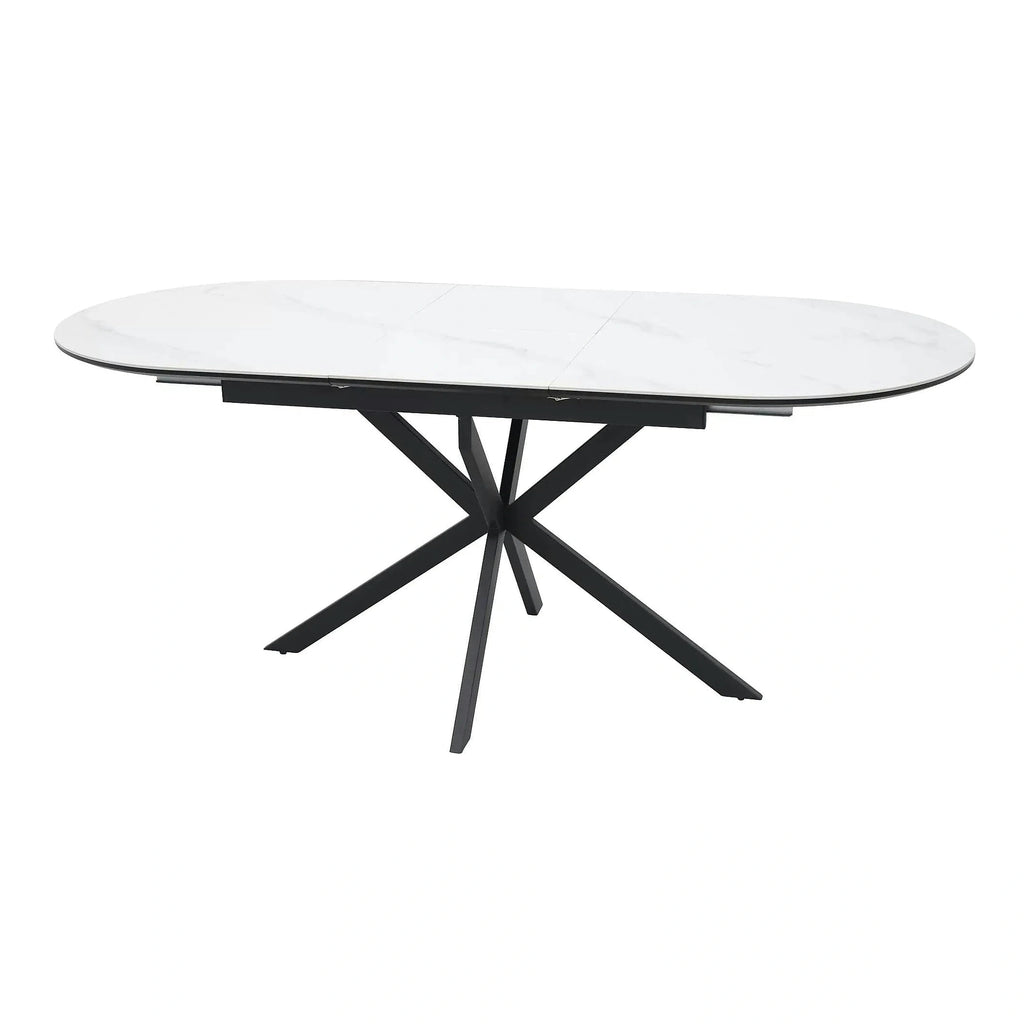 Masa extensibila pentru sufragerie GASTON, alb/negru, ceramica/metal, 140/180x80x76 cm