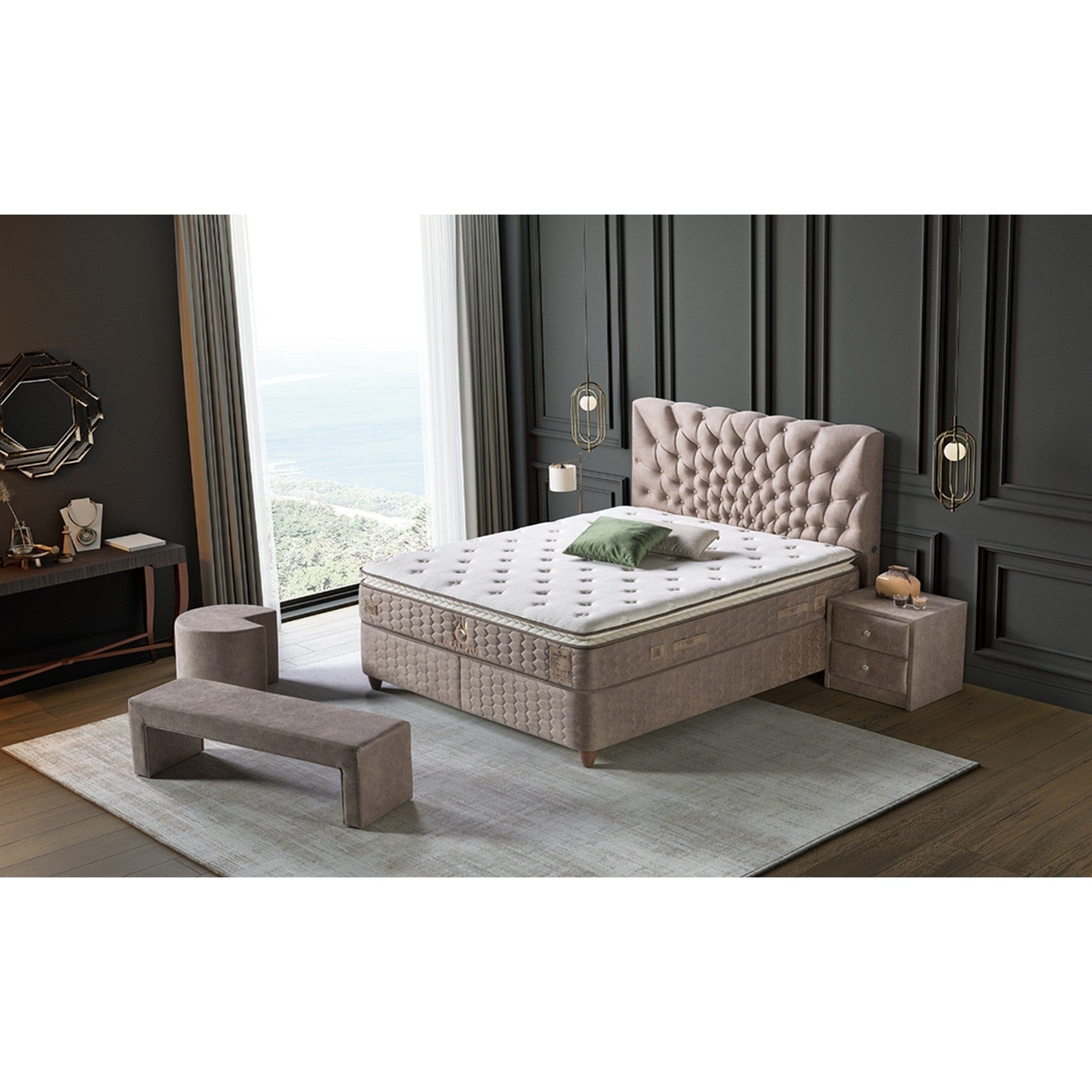 Pat Ocaliptus 160x200, stofa bej, cu suport saltea si lada depozitare