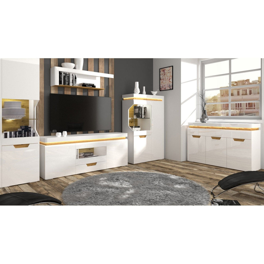 Comoda TORIN, stejar, PAL laminat, cu iluminare LED, 180x45x83 cm