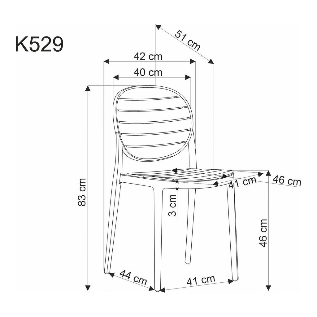 Scaun de gradina K529, stejar/negru, polipropilena, 42x51x83 cm