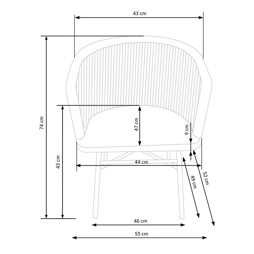 Scaun K400, gri/bej/negru, stofa/rattan sintetic/otel, 55x47x74 cm