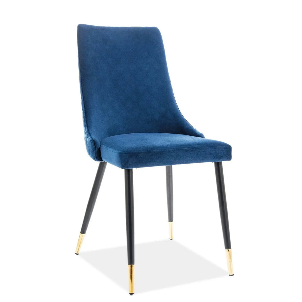 Scaun tapitat PIANO, albastru/negru, stofa catifelat/metal, 47x44x93 cm