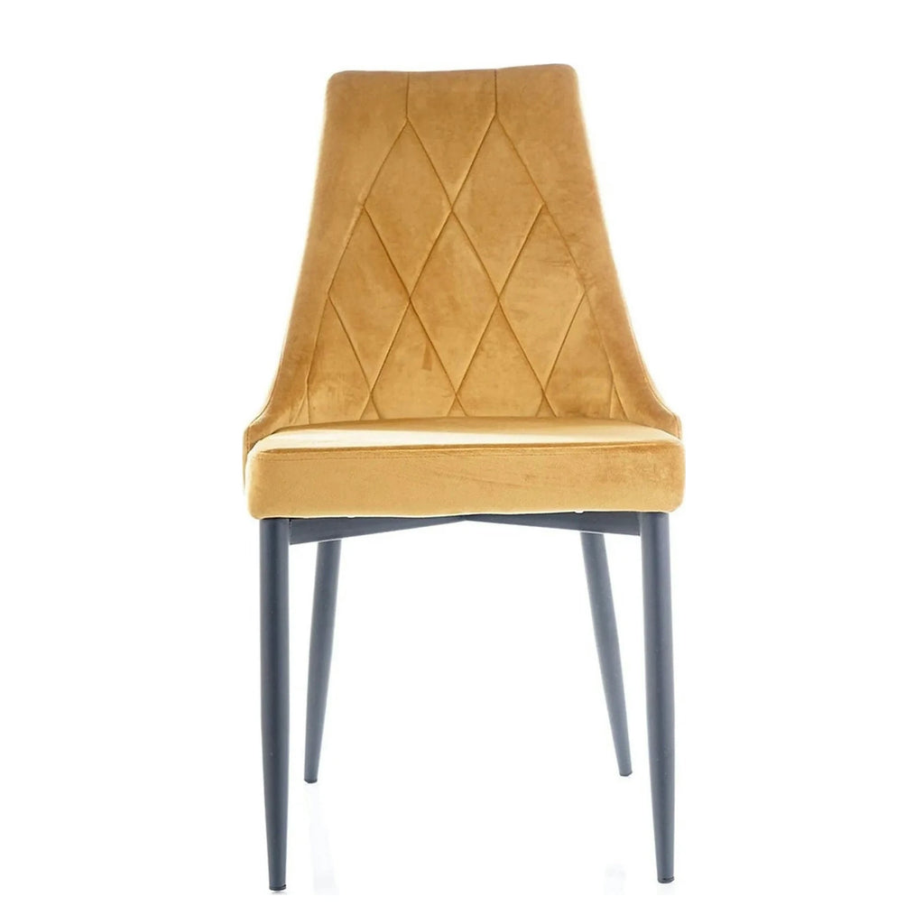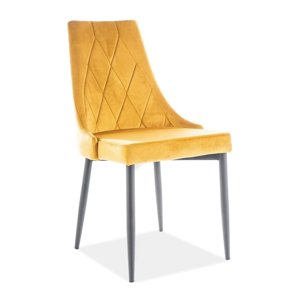 Scaun tapitat TRIX B, galben/negru, stofa catifelata/metal, 49x47x89 cm