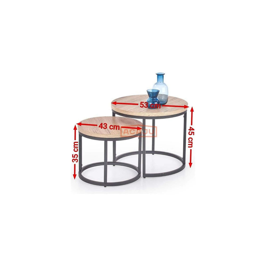 Set 2 masute cafea OREO, stejar San Remo/otel vopsit
