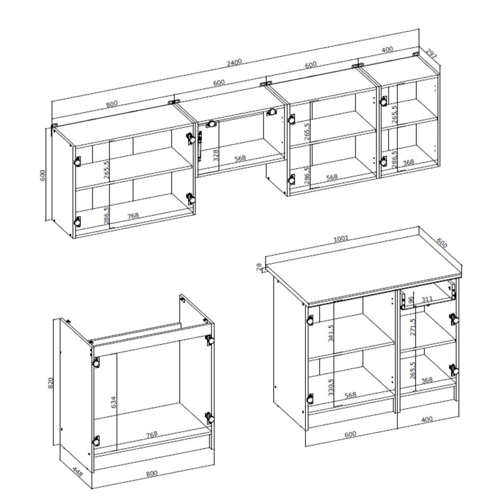 Set bucatarie DARIA, gri antracit/stejar craft, 240 cm
