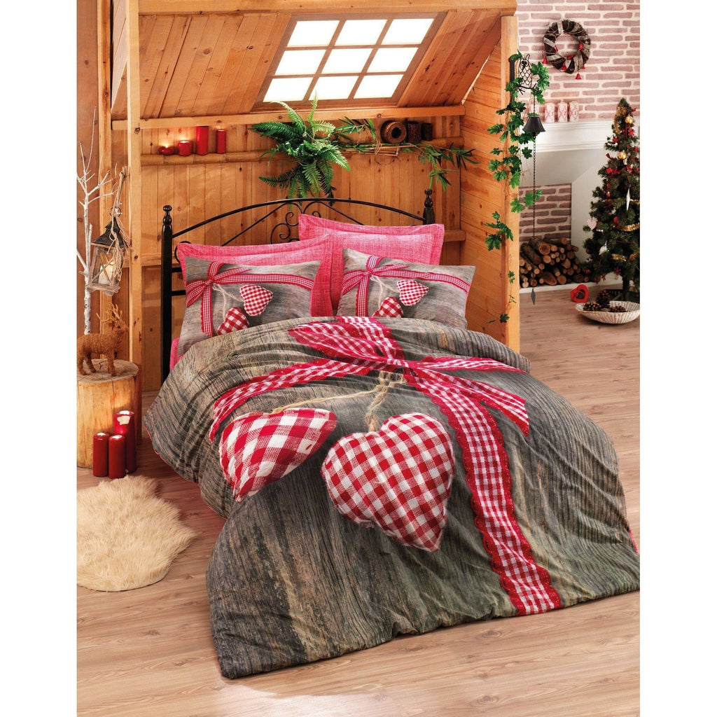 Set lenjerie pat dublu LOVEBOX, bumbac, rosu/gri, 240x260 cm, cu cearceaf pat, cearceaf pilota si 2 fete de perna